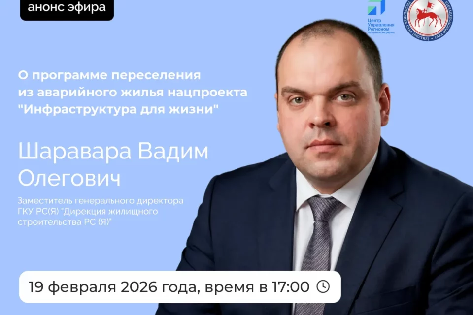 Заместитель генерального директора Дирекции жилищного строительства РС(Я) Вадим Шаравара в четверг, 19 февраля, проведет прямой эфир на официальных страницах администрации главы и правительства республики в социальных сетях «ВКонтакте» и «Одноклассники» совместно с ЦУР Якутии.