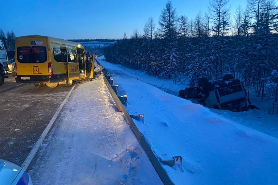 В результате ДТП, одним из участников которого стал водитель автобуса с надписью «Дети», пострадали три человека. Как ЯСИА сообщили в пресс-службе ГИБДД Якутии, предположительно виновником стал водитель автомобиля МАЗ, который в результате опрокинул свой автомобиль в кювет.