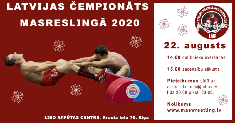 22 августа 2020 года в Латвии ожидается активность по мас-рестлингу. В этот день пройдут соревнования среди взрослых и детей.