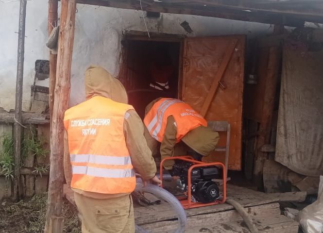 Спасатели с помощью мотопомп откачивают воду и просушивают дома в селе Боронук Верхоянского района, передаёт ЯСИА.