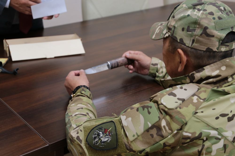 Николай рассматривает подаренный нож и рассказывает нам о буднях войны. Он оставляет впечатление спокойного, размеренного, обстоятельного человека. Наверняка эти качества востребованы его армейской специализацией, ведь он входит в «пятерку» штурмового подразделения. Часть мотострелковая. Недавно приехал в отпуск по ранению. Собирался в обычный, а поехал в мае на восстановление. Попал под сброс с беспилотника и осколками серьезно посекло бедра. Часть металла так и осталась в теле.