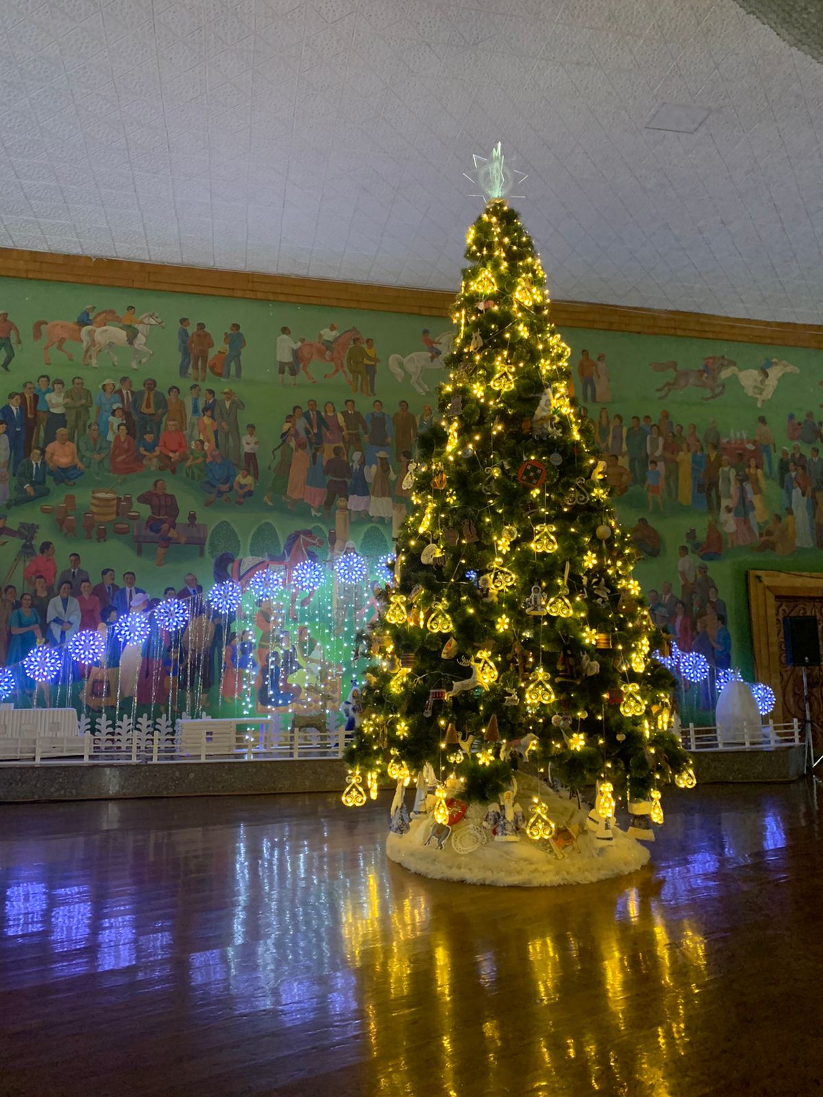 Акцией «Ёлки России — 2022» завершается Год культурного наследия народов страны. Вот и в Государственном театре оперы и балета облачилась в новый наряд. В этом году ее украшают игрушки в национальном стиле.