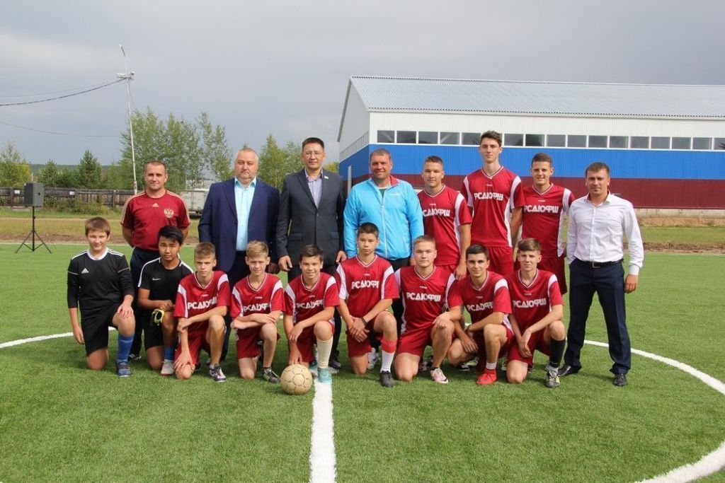 Новое футбольное поле в Алданском районе появилось благодаря «Целевому фонду будущих поколений», «Железным дорогам Якутии», ООО «Ассоциация строителей АЯМ», ООО «Трансмиг», ООО О «СРП», индивидуальному предпринимателю Юрию Ушакову. Размер объекта, который возведен в рамках реализации национального проекта, — 40 на 60 квадратных метров.