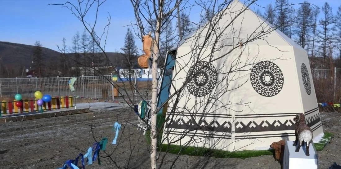 Мини-стойбище представляет собой точную и безопасную для детей модель традиционного жизненного уклада. Здесь есть стилизованные юрта, палатки, нарты и кораль. Как отмечает Евдокия Харина, заведующая детским садом «Оленёнок», площадка стала эффективным образовательным инструментом: «Дети чувствуют связь с природой: можно забраться верхом на оленя, посидеть в настоящей палатке, почувствовать себя единой кочевой семьёй. Здесь мы планируем проводить День юного оленевода, соревнования по северному многоборью, праздник рождения оленёнка. Таким образом, дети из кочевых семей через игру получают живую адаптацию в традиционном социуме».