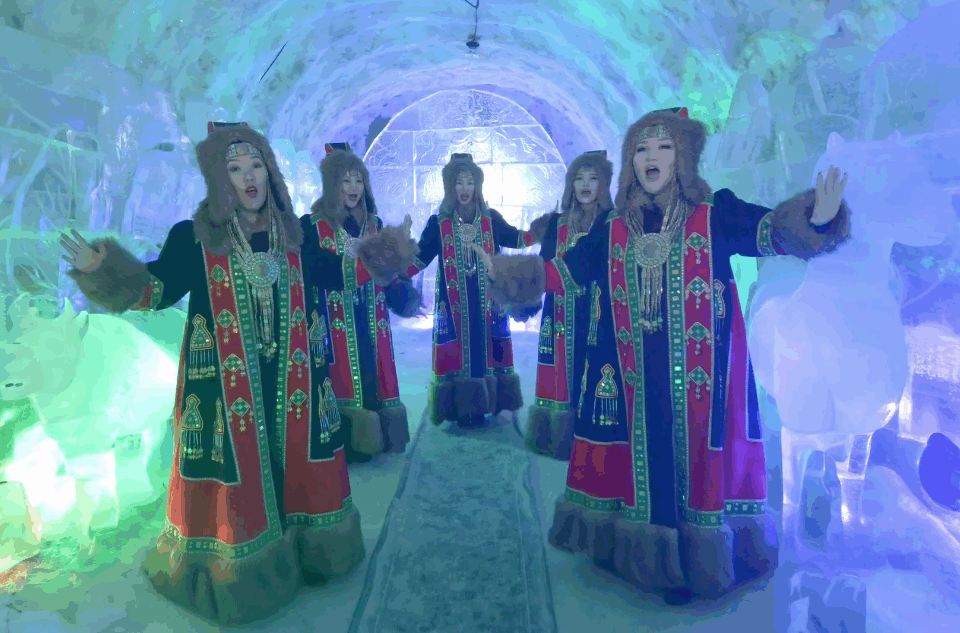 Коллектив записал исполнение хита в знаковом месте — «Царстве вечной мерзлоты», показав зрителям ледяные скульптуры и тронный зал Чысхаана.