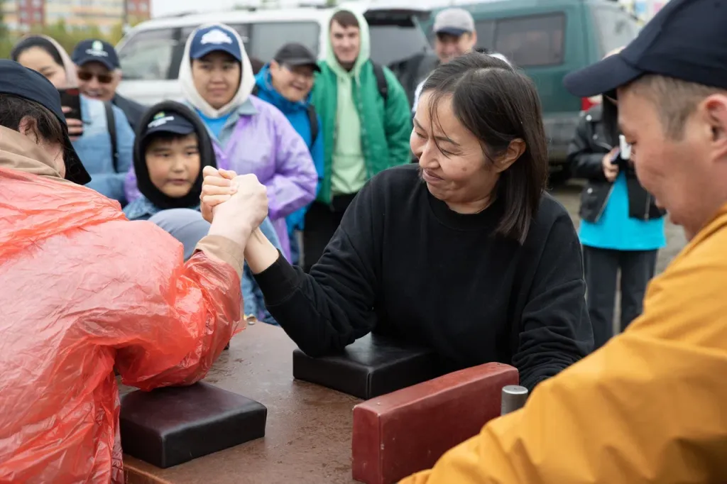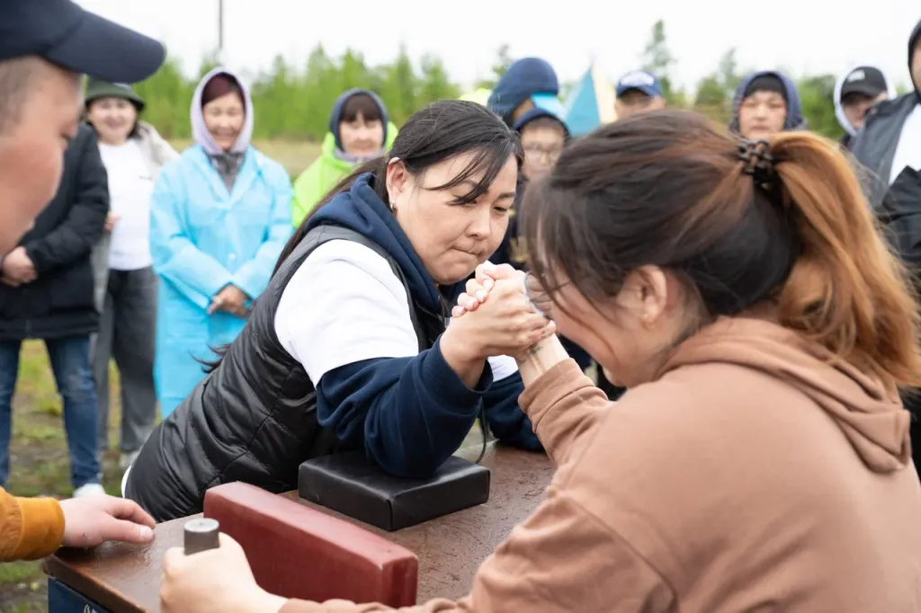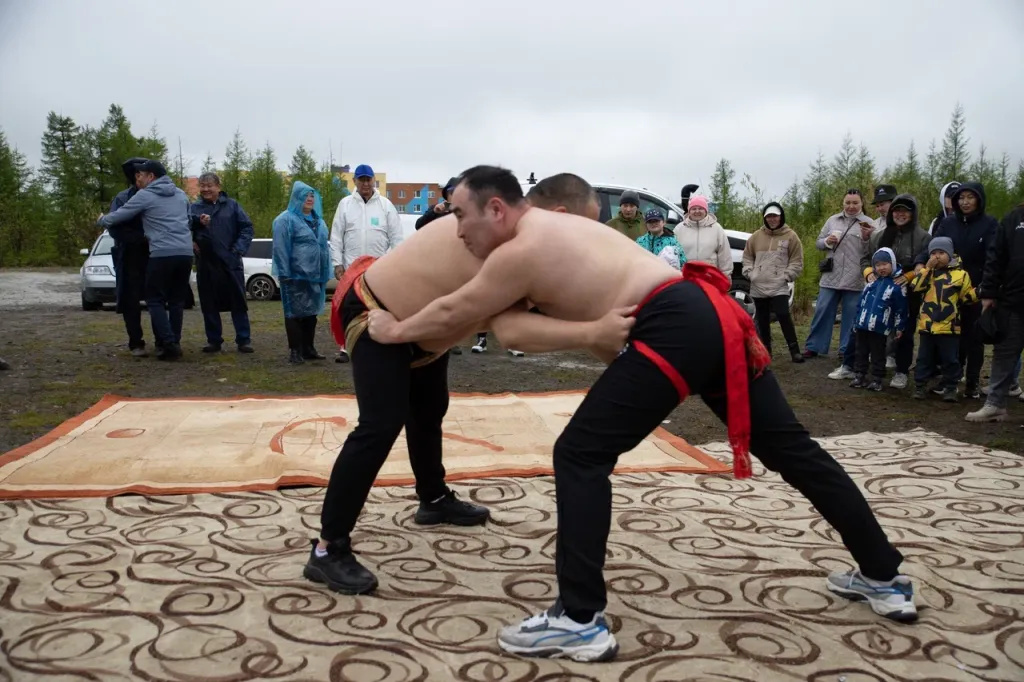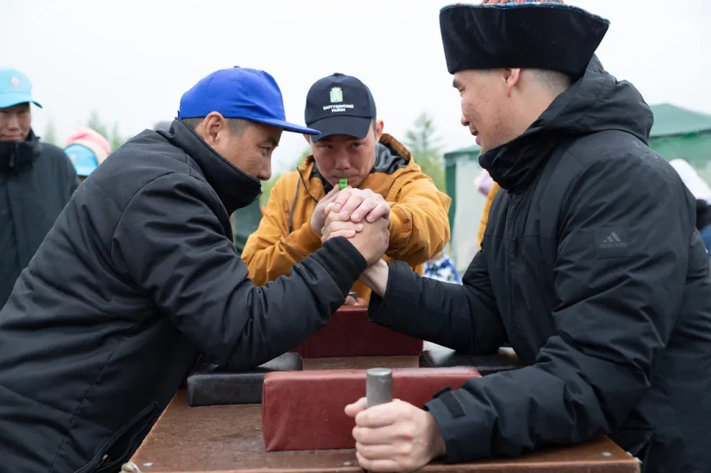 Продолжился праздник спортивными состязаниями: армрестлингом, национальной борьбой «Бүхэ барилдаан», перетягиванием каната и разбиванием хребтовой кости «hэер шаалган».