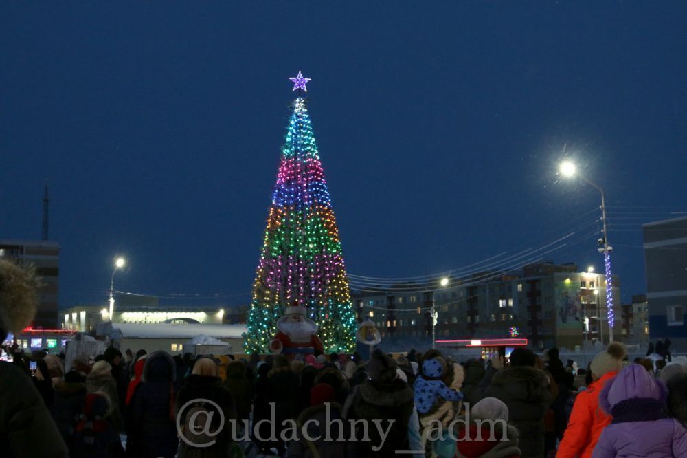 Всю последнюю неделю удачнинцы жили в ожидании чуда и волшебства. На Центральной площади уже установили городскую елку, фигуры Деда Мороза, его внучки Снегурочки и символов года по китайскому календарю, а вот вся иллюминация и, конечно, новогоднее настроение ждали своего часа.