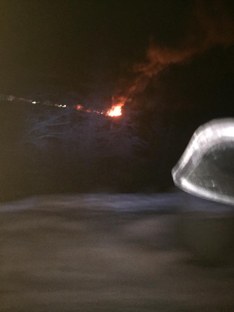 Пожар в гараже, где находилось много техники, случился сегодня утром, огонь охватил 450 кв. метров. Пожарные потушили его через час после прибытия.