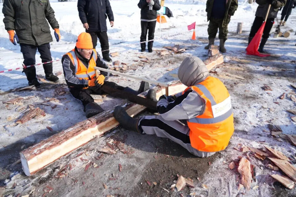 Александр Захаров трудится кочегаром котельной производственного участка с. Ботулу, сын Александр – ученик 10-го класса. Они обошли соперников, став лидерами и призерами во всех восьми состязаниях: визитка (видеоролик), оттеска бревна, распил бревна на поленья, заготовка дров, прорубание проруби, залезание на столб, заваривание чая на костре и охотничий биатлон.