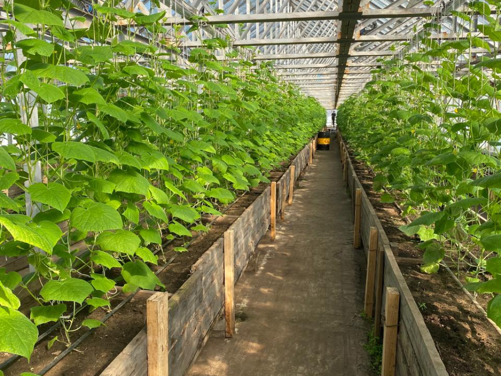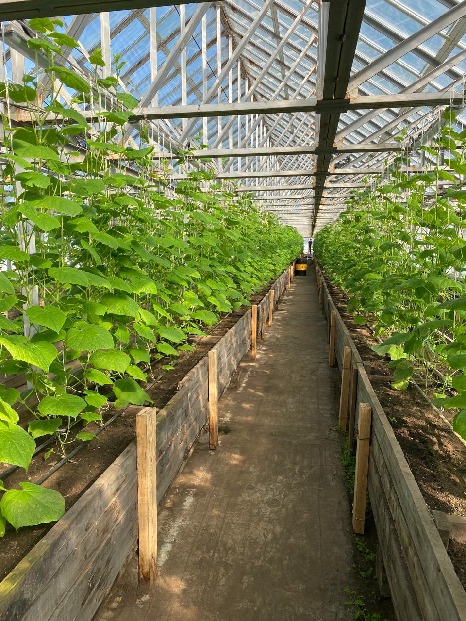 В светлых и теплых теплицах на площади около 600 квадратных метров уже висят хрусткие и сладкие огурчики проверенных агрономами сортов.