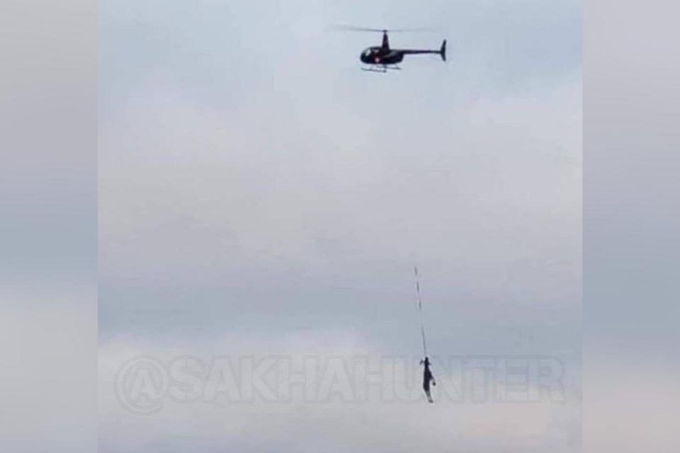 Якутская транспортная прокуратура начала проверку после публикации в телеграм-канале «Охота и рыбалка в Якутии» фотографии перевозки туши лося на вертолете. Добытое животное подвесили на трос и вывезли с места охоты на Robinson-44.