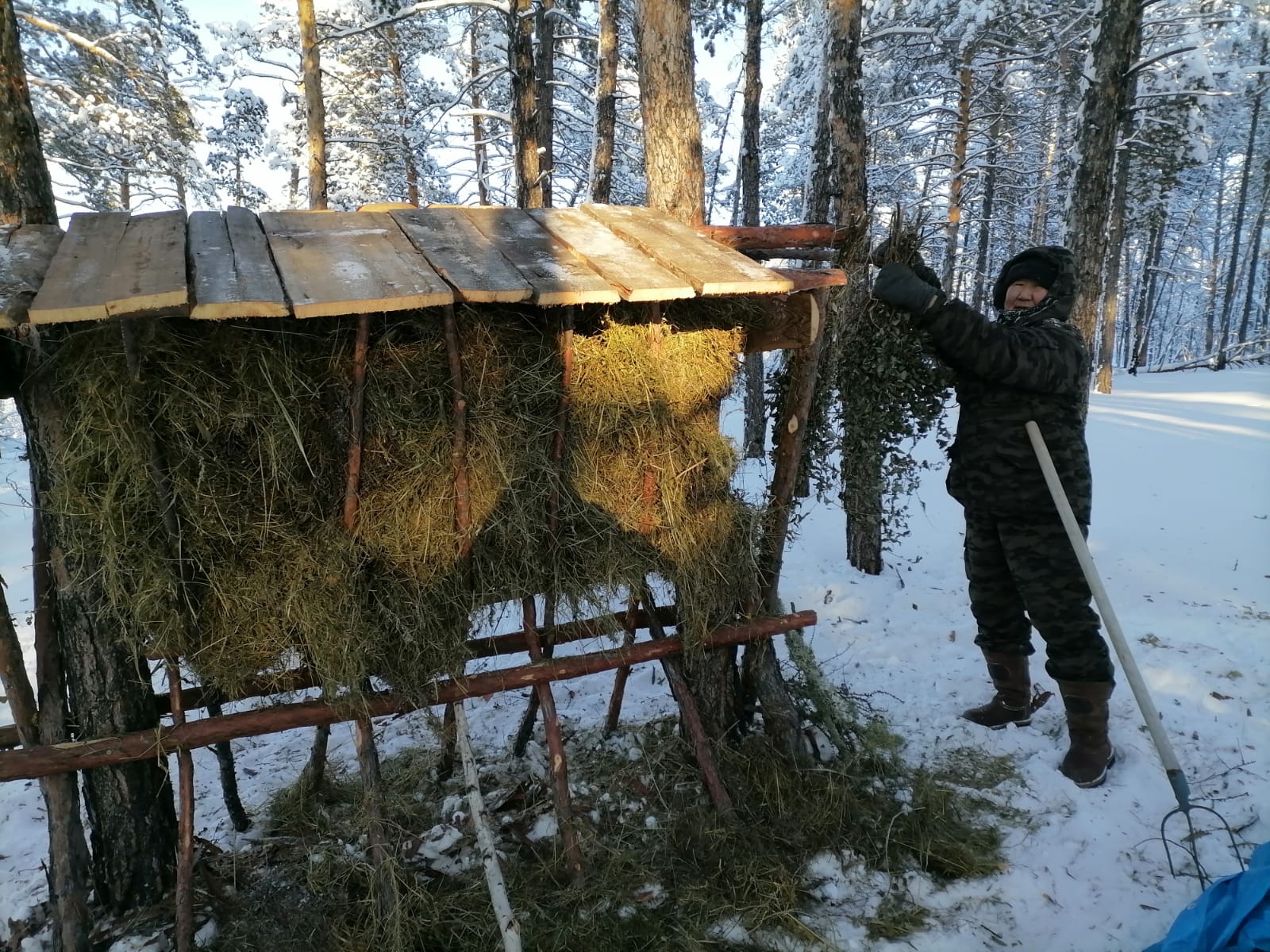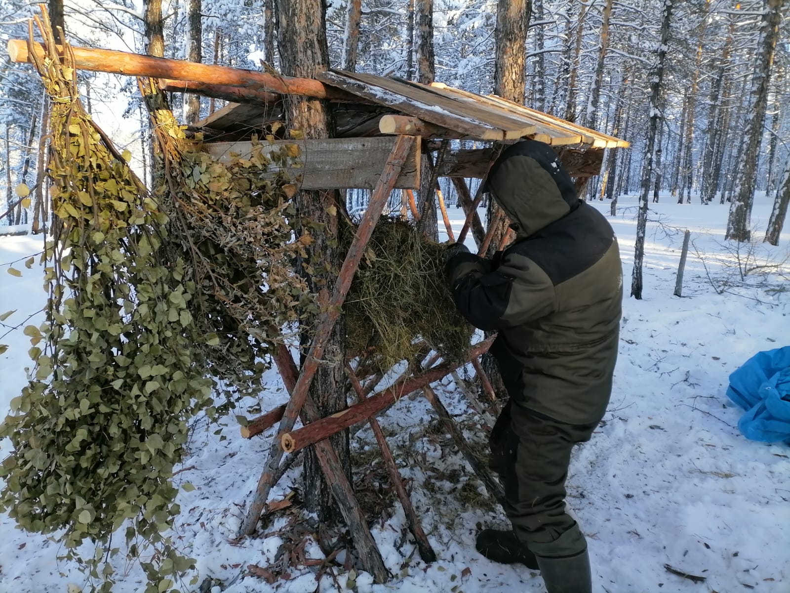 «В прошлом году мы подкормку провели в марте-апреле, тогда снег был глубокий, на нем появилась ледовая корка, косулям было очень тяжело в тот период передвигаться в поисках еды, — рассказывают общественники — Тогда мы сено раскладывали на довольно обширной территории, сделали солонцовую колоду. В этом году решили сооружать кормушки, чтобы корм не завалило снегом, и звери могли до весны угощаться на этих местах. Веники из тальника заготовили летом, они сохранились в отличном виде, душистые и свежие, думаем, что косулям понравится».