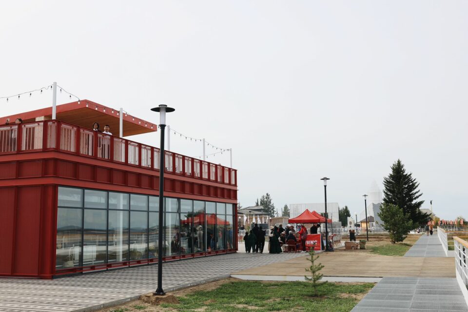 Авторы проекта — архитектурное бюро grd: — постарались учесть все местные традиции, айдентику и топонимику, чтобы воплотить это в жизнь на большой территории. Здесь есть круглогодичное кафе, смотровая вышка, спуск к реке и арт-объект «Церковь» — инсталляция, посвящённая церкви-собору Николая Чудотворца, которая стояла здесь в XIX веке.