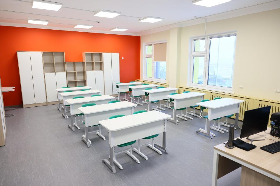 Площадь здания – более 5 тысяч квадратных метров. В школе есть актовый и спортивный залы, швейные и столярные мастерские, в классах – цифровые интерактивные доски. На территории расположены спортивные и детские площадки, беговые дорожки и автономная газовая котельная.