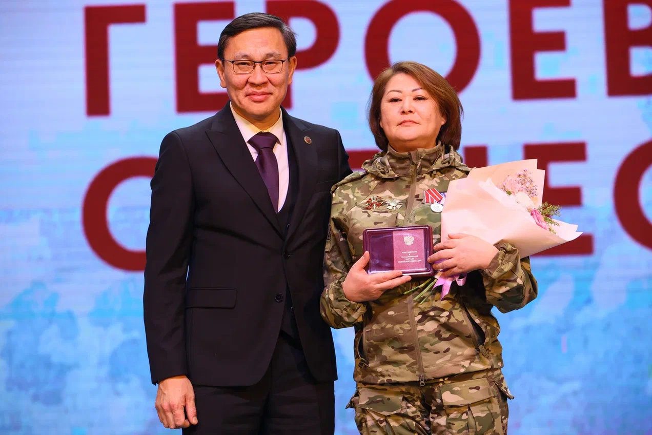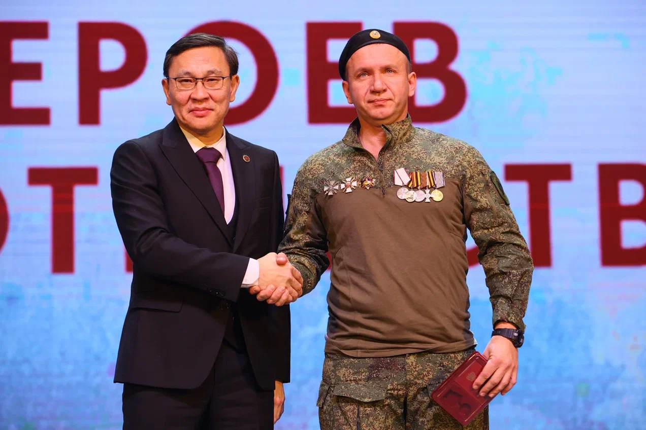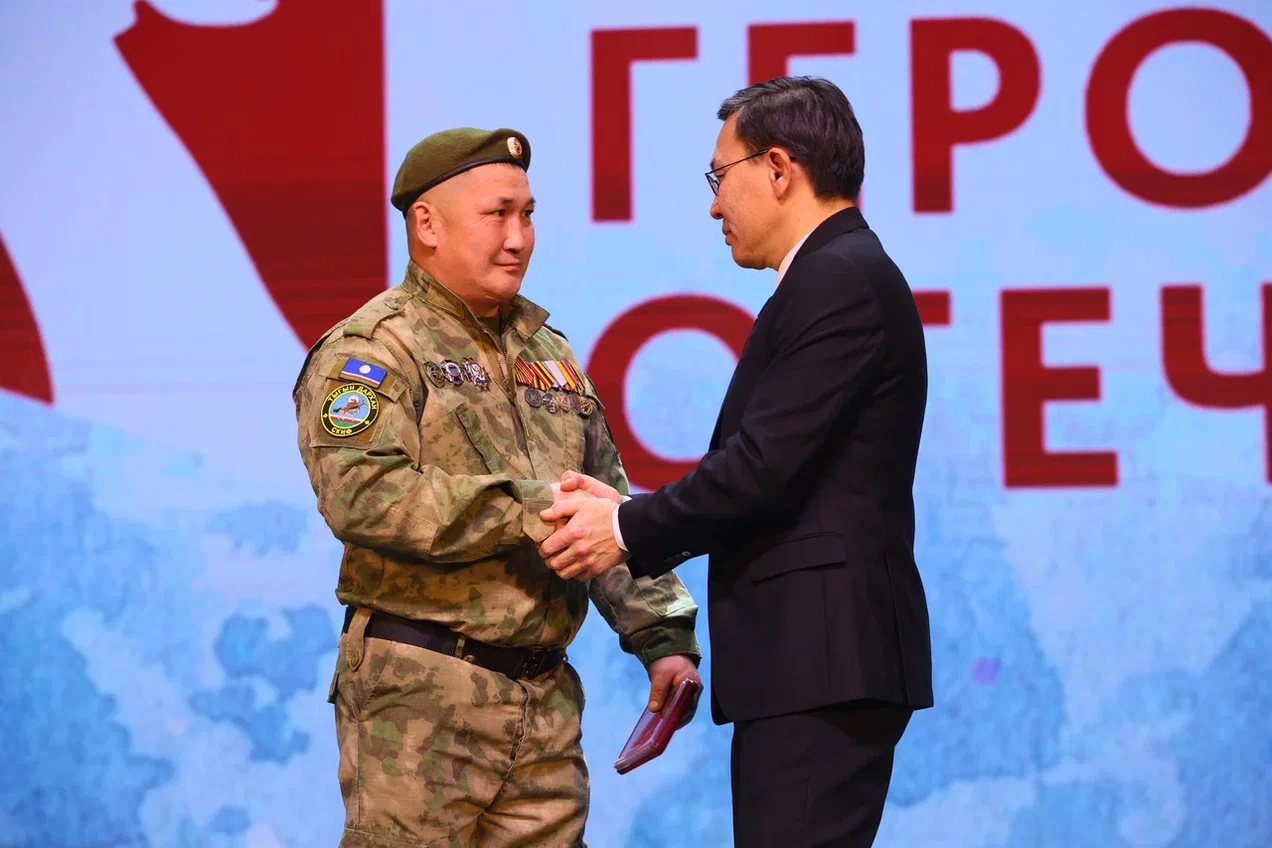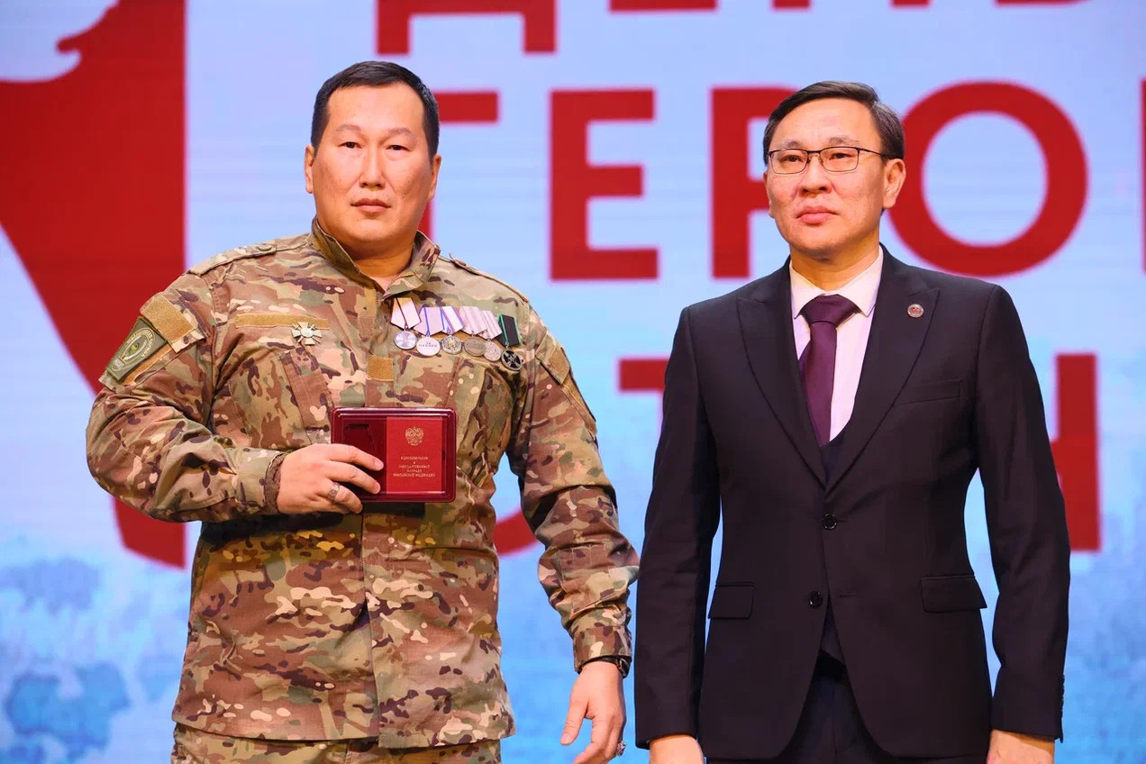 В ходе вечера руководитель администрации главы и правительства Якутии Георгий Михайлов вручил высокие государственные награды участникам специальной военной операции, военнослужащим Вооруженных Сил России.