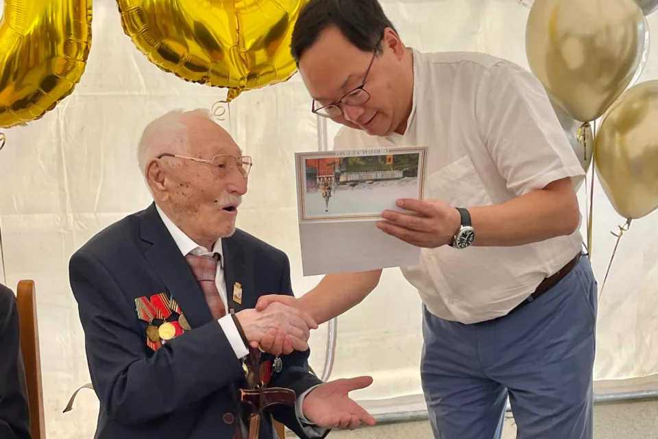 Также юбиляра поздравил Наум Трифонович Слепцов, участник Великой Отечественной войны, которому сейчас 101 год.