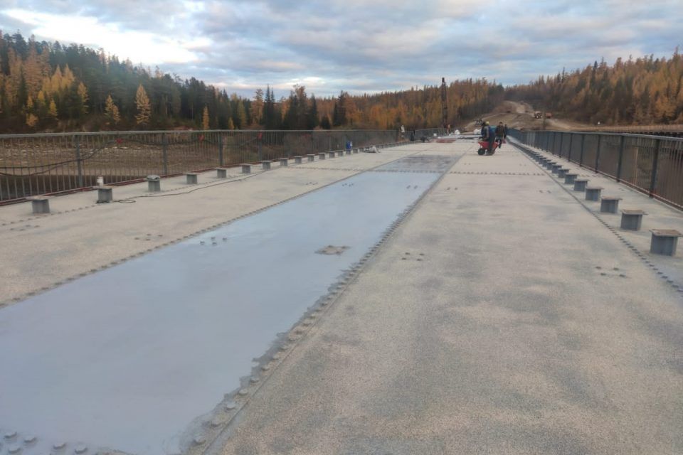 Также впервые в этом году при ремонте дорог применили мастичную однокомпонентную полиуретановую гидроизоляцию «Рабберфлекс-55». Она предназначена для защитно-сцепляющего слоя на стальной ортотропной плите в конструкциях дорожной одежд на пролетных строениях мостовых сооружений. Такая система применена при строительстве мостового перехода через реку Нюя, в Ленском районе.