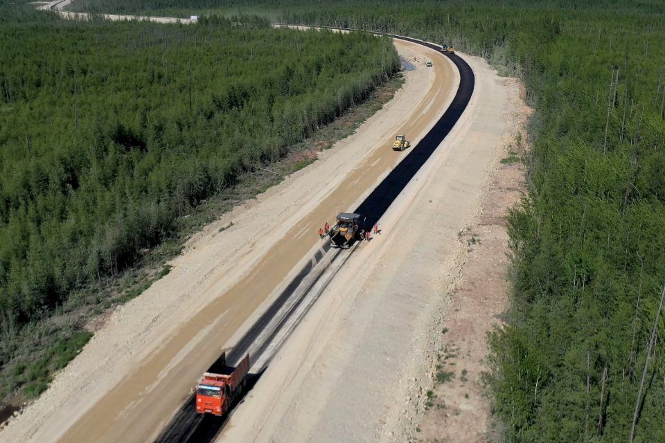 В Якутии приступили к асфальтированию автодороги А-360 «Лена» на участке трассы Невер – Якутск. Рабочие устраивают водосбросы и укладывают нижний слой дорожной одежды из черного щебня.