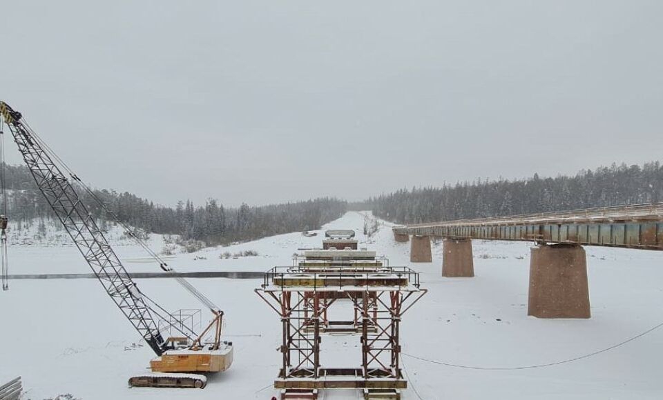В Мирнинском районе в июле текущего года началось строительство 80-метрового моста через реку Чуоналыр. Старый мост демонтирован, в полосе отвода вырублен лес, обустроен вахтовый поселок.