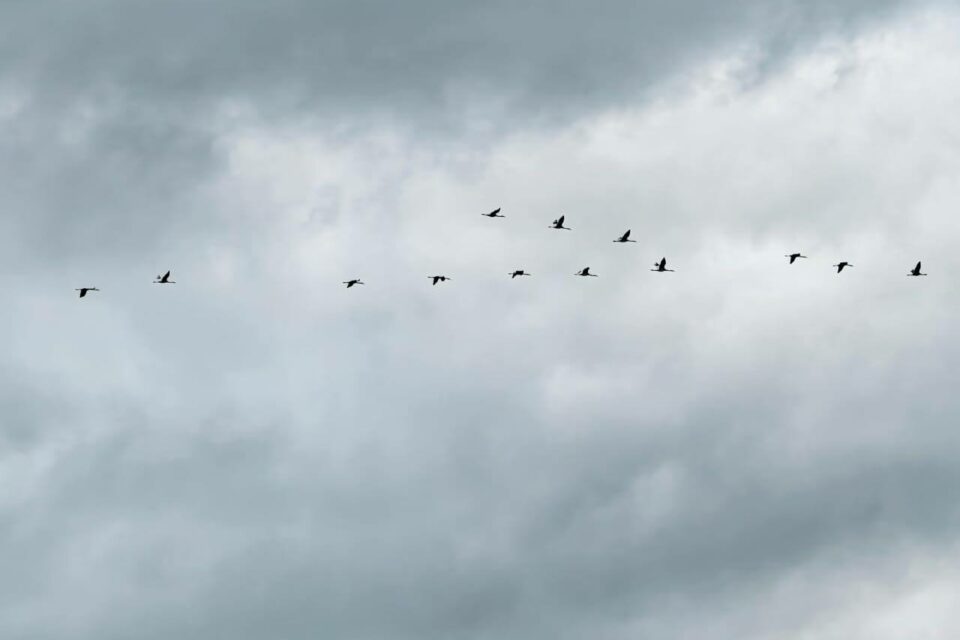 «В отличие от весеннего, осенний перелет птиц отличается особой массовостью, ведь взрослые птицы патрулируют полет только недавно научившихся летать птенцов. Это позволяет наблюдать, как прекрасные стерхи пролетают крупными стаями», — пояснили специалисты.