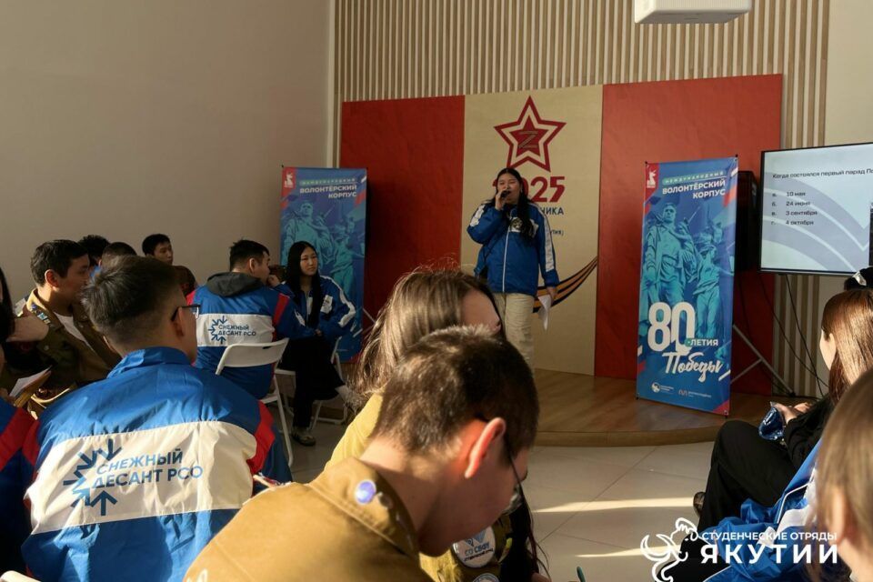 «В рамках открытия ежегодной акции в волонтёрском центре провели обучение и викторину на знание основных событий Великой Отечественной войны. Снежный десант РСО – это молодежная добровольческая, волонтерская акция, участниками которой являются бойцы студенческих отрядов», – рассказала специалист PR-отделаякутского регионального штаба молодежной общероссийской общественной организации «Российские студенческие отряды» Сардаана Дойдукова.