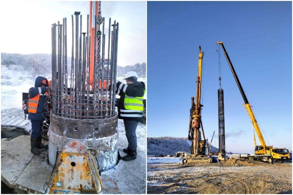 Как сообщает Группа «ВИС», для следующего этапа работ изготовлены 54 арматурных каркаса. Всего в левобережной части построят четыре опоры, еще три — в русле реки, остальные 19 – на правом берегу, где будет расположен автомобильный подход к мосту от федеральных трасс «Лена» и «Колыма».
