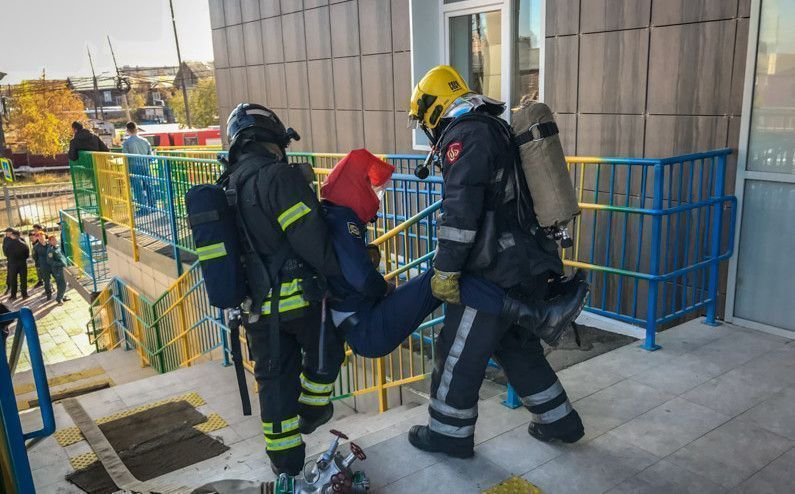 Двух детей-статистов спасли разными способами, в зависимости от местонахождения. После обнаружения на них были надеты индивидуальные спасательные устройства, позволяющие дышать в задымленных помещениях. В результате слаженных действий все условные пострадавшие успешно обнаружены.