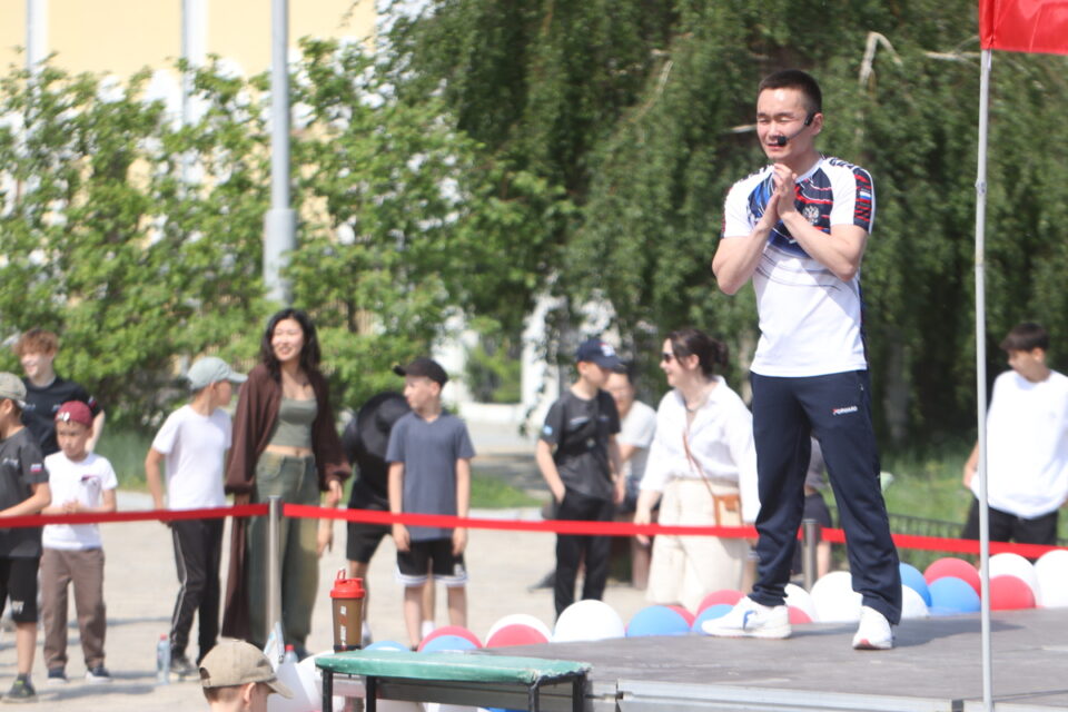 «Вы знаете, что в Якутии есть Федерация ГТО и многоборья, проводят различные соревнования. Недавно ребята приехали из Иркутска с «Вызова Севера», где заняли третье место. Многоборье ГТО — это подготовка человека к выносливости, любым вызовам, будь то на работе, охоте или вооруженных силах. В 2019 году мы придумали гиревой комплекс «12.06», который посвящен Дню России. Сделаем его и сегодня. Всех призываю заниматься спортом, любить свою Родину», — сказал заместитель председателя правительства Якутии Анатолий Семёнов.