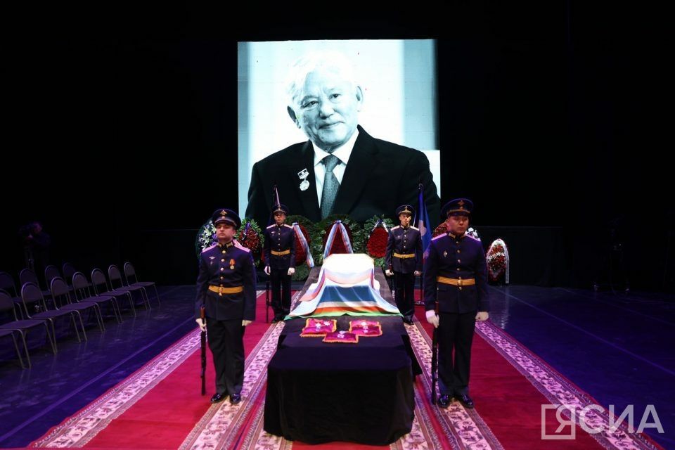 В Якутске в государственном театре оперы и балета началась траурная церемония прощания с первым президентом Якутии Михаилом Николаевым.