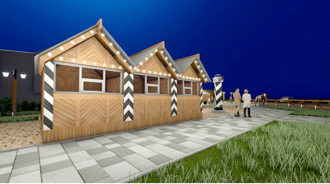 На территории сквера будет расположена зона отдыха с качелями, открытая территория будет использоваться для проведения сезонных ярмарок и выставок. Дизайн круглогодичных павильонов разработан в стиле ярмарочных рождественских павильонов, с деталями в виде верстовых столбов. Кроме этого, будет организовано место для размещения скульптуры лошади с санями для ее установки в последующем.