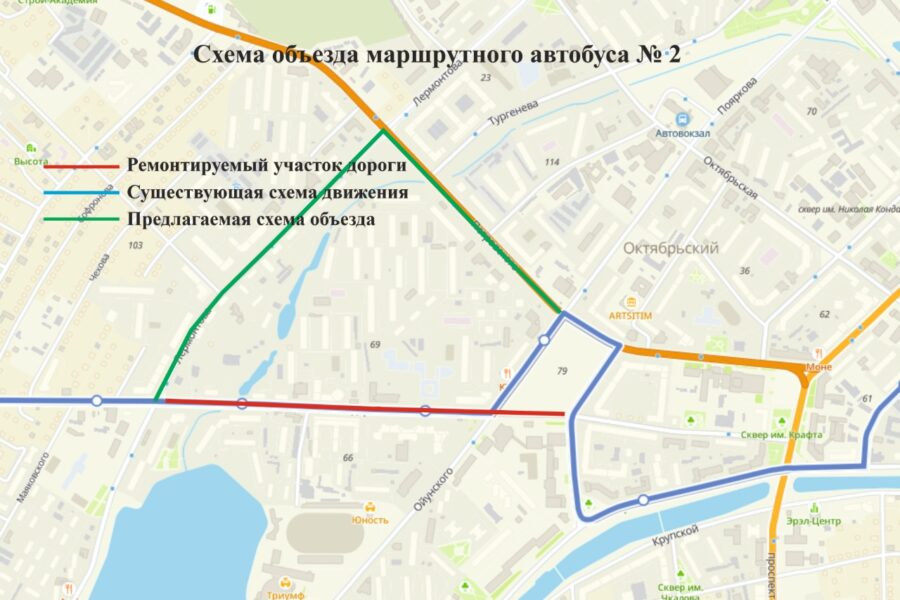 Маршрутные автобусы № 2, 15, 19 осуществляют движение согласно разработанным схемам объезда.