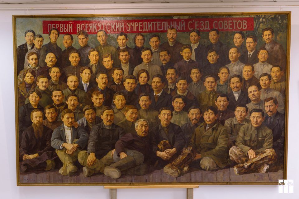 Так, на выставке представлены работы «Избранные народом» (2021-2022), написанный к 100-летию государственности республики, «Снайпер Пюмпэ» (2020), «Трагедия поэта» (1997-1998) и другие картины.