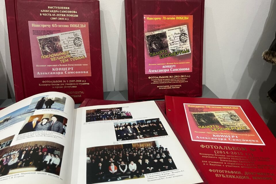 7 мая в Музее музыки и фольклора народов Якутии состоялось торжественное открытие выставки «Певец Победы», приуроченной к 90-летию со дня рождения народного артиста Якутии, заслуженного артиста России Александра Самсонова. Название выставки выбрано неслучайно — именно так называли артиста его слушатели. Александр Самсонов на протяжении многих лет вёл майские балы на площади Победы, совмещая оперный и патриотический репертуар. Выставка будет открыта для посетителей до 30 мая.