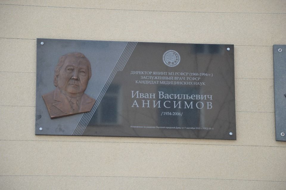 14 апреля на открытой площадке научно-практического центра «Фтизиатрия» прошло торжественное открытие мемориальной доски, посвященной профессору, кандидату медицинских наук, заслуженному врачу РСФСР, директору Якутского научно-исследовательского института туберкулеза с 1968 по 1994 годы Ивану Васильевичу Анисимову.