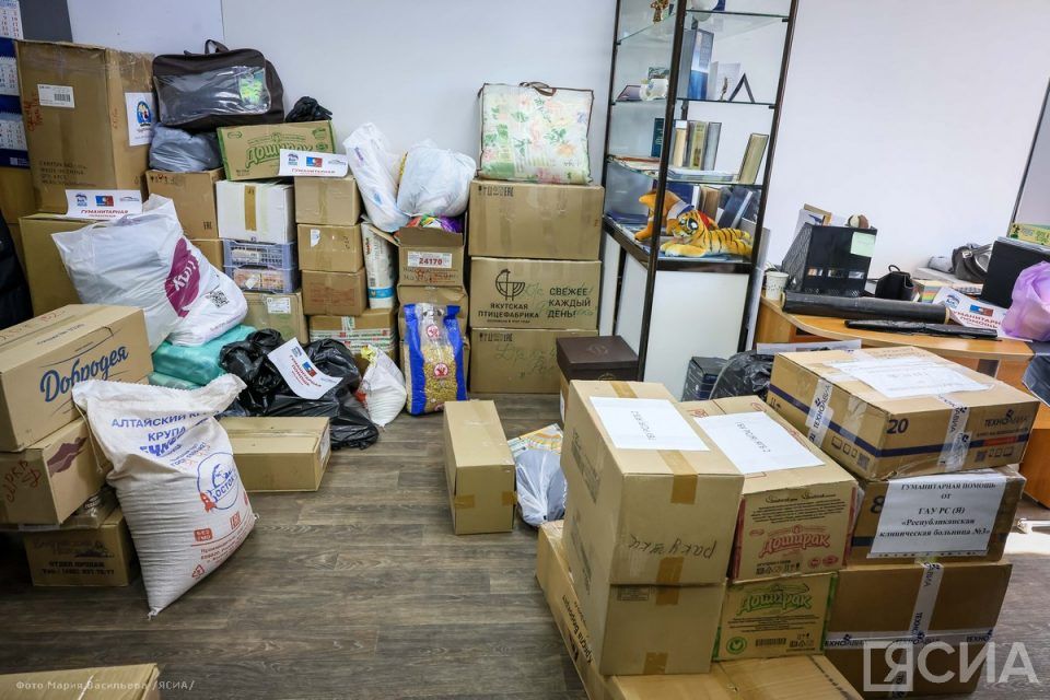В здании Арктического государственного агротехнологического университета в Якутске развернули пункт по приему гуманитарной помощи для жителей, пострадавших от паводка.