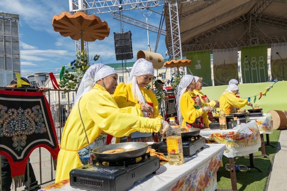 На площади до 17:00 работает ярмарка местной продукции и выставка-продажа якутской национальной одежды. Для гостей организованы национальные игры, мастер-классы для детей и тематическая фотозона.