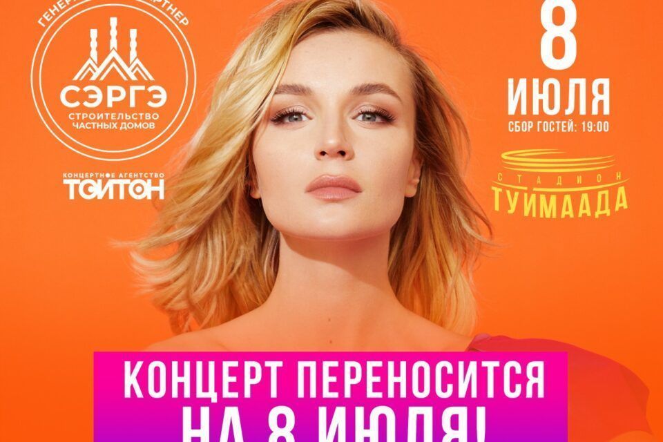 Концерт Полины Гагариной в Якутске, который должен был состоятся 26 июня на стадионе «Туймаада», перенесен на 8 июля, сообщили организаторы шоу. Причиной переноса называют неготовность технической аппаратуры. Все приобретенные билеты действительны.