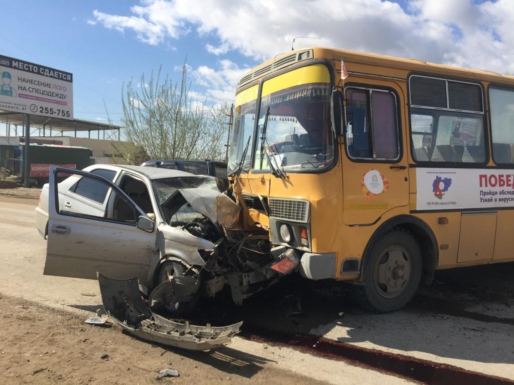 Утром 29 мая на Маганском тракте в Якутске столкнулись иномарка и маршрутный автобус.