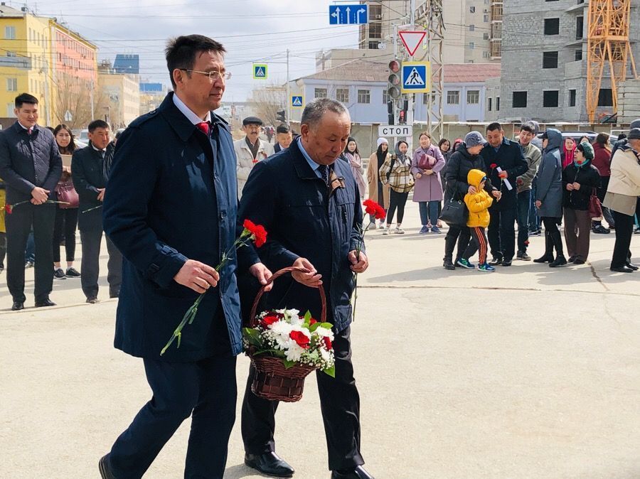 В конце мероприятия собравшиеся возложили цветы к бюсту Николая Тарского, расположенного у входа в стадион «Туймаада».