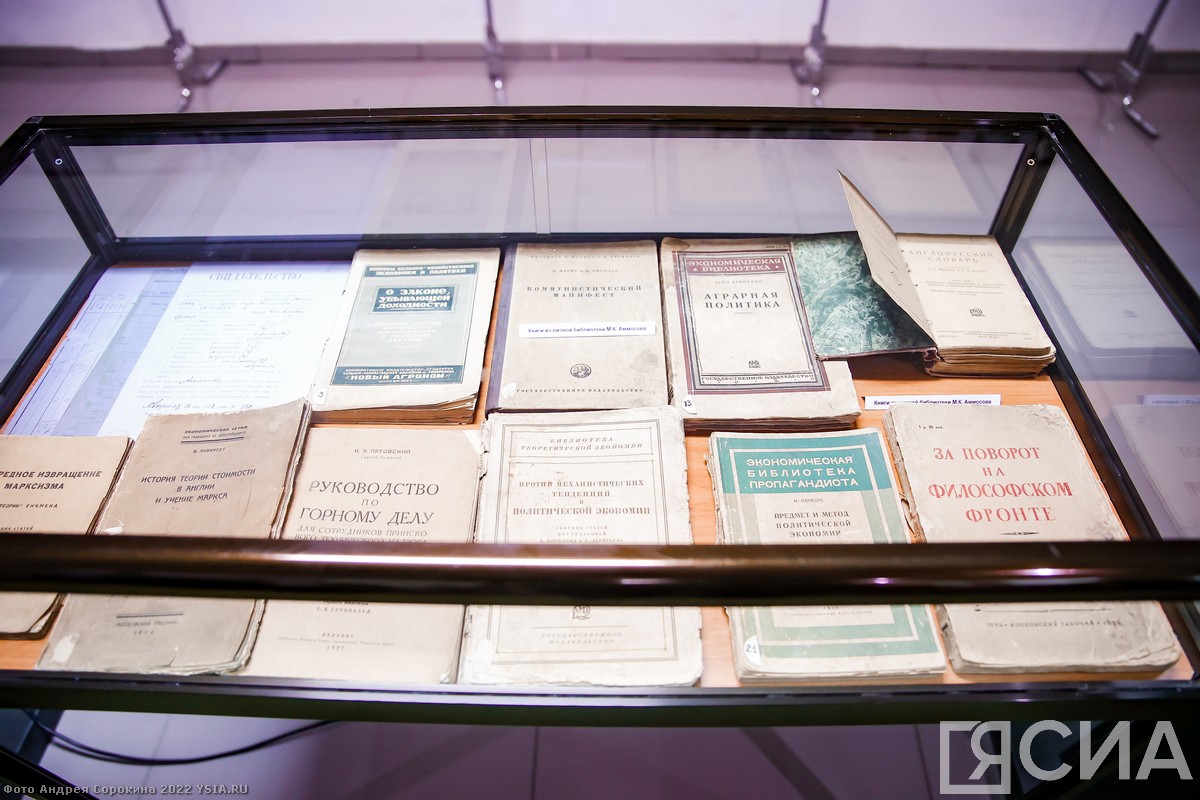 Здесь собрали личные вещи отцов — основателей республики, архивные материалы, документы, фотографии и книги. Экспозицию о жизни и деятельности Максима Аммосова подготовил республиканский музей истории государственности Якутии его имени.