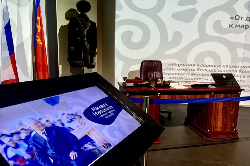 Библиотека-архив М. Е. Николаева представила архивные документы, связанные с Михаилом Ефимовичем: письма, книги, личные вещи, рабочий стол из Октемцев, костюмы, награды набор орденов. При формировании фонда музея Михаил Николаев лично передавал эти вещи, а также его семья.