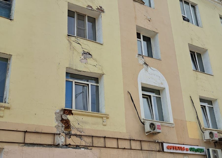 В Якутске с фасада жилого дома по проспекту Ленина, 42 обрушились кирпичи. «Четырёхэтажка» 1964 года постройки признана аварийной. Как сообщили ЯСИА в управе Октябрьского округа, угрозы обрушения жилого дома нет.