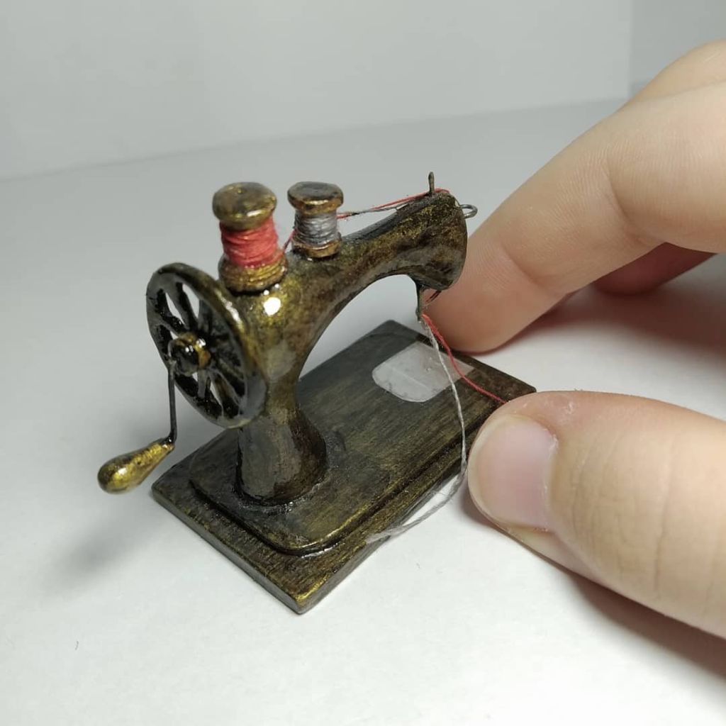 Автор кукольной миниатюрной мебели и других предметов – Вилена Васильева, ученица 8 «Б» класса школы №2. Самая маленькая из её работ – печатная машинка высотой всего 1 см, самая большая – 23 см. Идеи школьница черпает в социальной сети Pinterest, а вдохновение – у зарубежных мастеров кукольной миниатюры