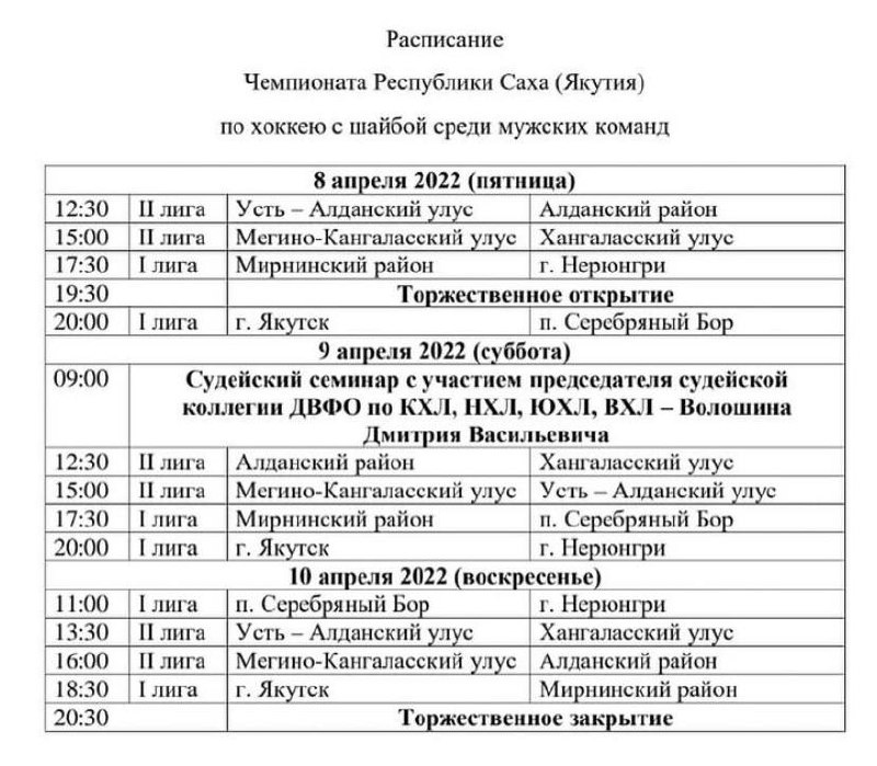 С 8 по 10 апреля на ледовой арене спорткомплекса «Эллэй Боотур» восемь сильнейших команд республики разыграют медали чемпионата в Первой и Второй лиге, сообщает Sportyakutia.ru.
