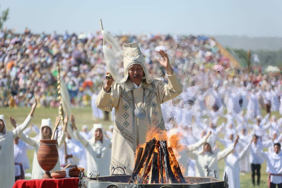 Зрителям представили театрализованное действие «100-летие ЯАССР». После начались ритуально-обрядовые действа и обряд поклонения священному огню, духам земли, верхним божествам.