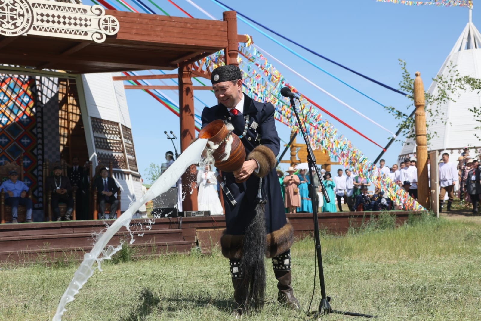 «Сегодняшний наш Ысыах Туймаады — это торжество дружелюбия, мира, справедливости, которые присущи нашим северным народам. Сегодня, когда на нашу страну обрушились различные западные санкции, когда против нас ведется необъявленная, а порой и объявленная война, мы еще больше этим Ысыахом хотим всем показать, что мы, народ саха, едины вместе с нашей великой Россией и нашим президентом Владимиром Путиным. Наш Ысыах — это торжество светлых сил. В празднике воплотились лучшие принципы нашего великого Олонхо, что добро всегда побеждает зло, а свет — тьму. Сегодня вместе с нами гости из более чем 50 стран мир, десяток субъектов страны. Я искренне благодарю братский Татарстан во главе с их президентом Рустамом Миннихановым, которые приехали к нам в эти дни разделить с нами праздник нашего священного Ысыаха», — сказал Айсен Николаев.