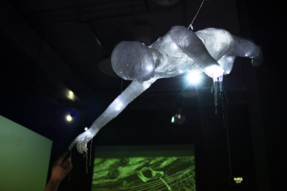 На выставке посетитель не только был зрителем. Он был частью искусства, взаимодействуя с ним. Инсталляция «Protect eternity of permafrost» студентов АГИКИ Айталины Морсуевой, Катерины Кузнецовой, Лены Рожиной, Кирилла Павлова общается с посетителем через прикосновение. Парящая «ледяная» скульптура человека является символом экологической проблемы таяния льда. «Прикоснувшись к его руке, я почувствовал себя тем, кто скоро исчезнет. Страшный, невероятный образ нависает над нами, и это будоражит», – поделился один из посетителей выставки.
