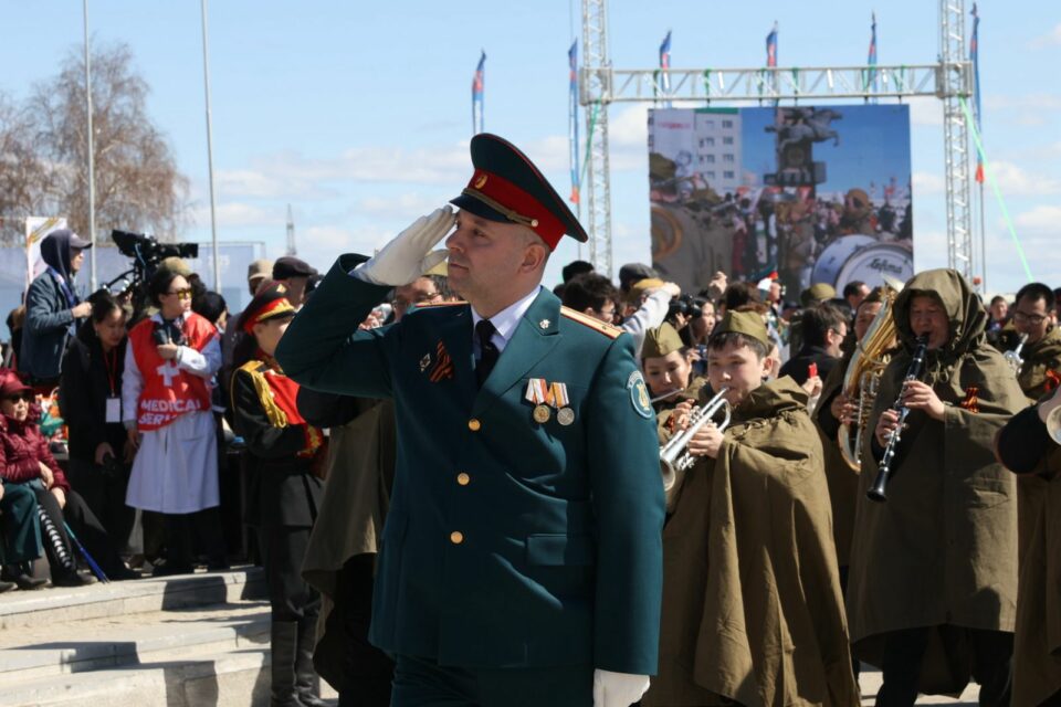 По традиции на площади Победы в Якутске после возложения цветов к монументу павшим воинам-якутянам и торжественного митинга прошло военно-патриотическое шествие, посвященное 80-летию Великой Победы. Началось шествие с доклада командира парада, подполковника Владимира Леоненко и заместителя военного комиссара Якутии полковника Алексея Рыжавского. Парад принял глава Якутии Айсен Николаев, сообщает ЯСИА.