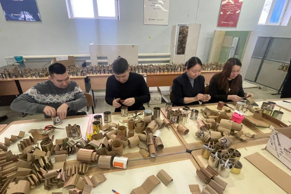Сотрудники Госстройжилнадзора обучили студентов и преподавателей Якутского коммунально-строительного техникума изготовлению блиндажных свечей.