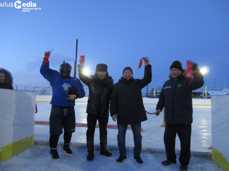 В церемонии открытия корта приняли участие первый заместитель главы улуса Владимир Птицын, глава села Дмитрий Тихонов, начальник улусного управления физической культуры и спорта Константин Захаров. Честь разрезать ленту входа была предоставлена первому замглавы, начальнику упрвления физкультуры и предпринимателю Никифору Дмитриеву, оказавшему большую помощь в подготовке корта к эксплуатации, и юному хоккеисту Алексею Неустроеву.